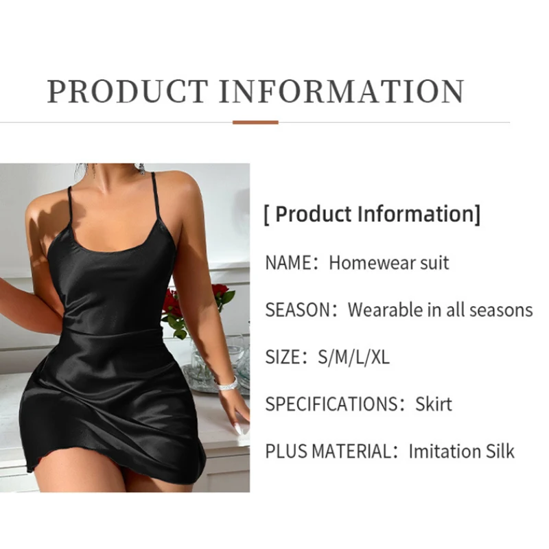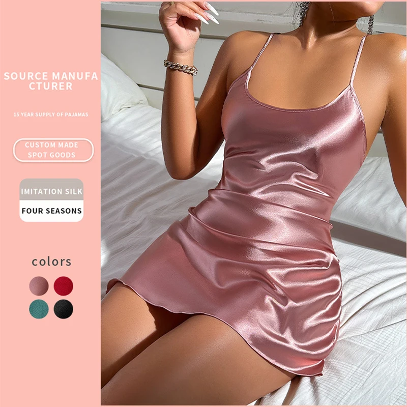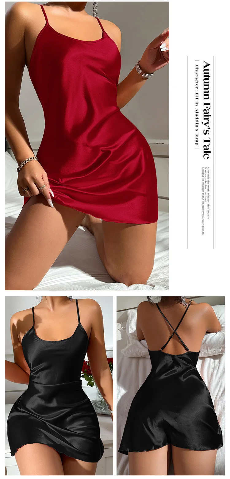 Valentine's Day sexy backless ice silk slip dress summer pajamas short women's home dress simulation silk nightdress casual nigh